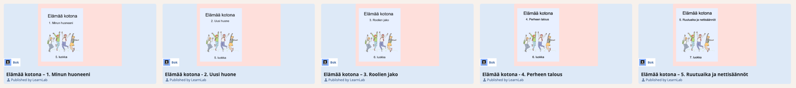 Tässä sarjassa oppilaat tutustuvat teksteihin, jotka käsittelevät kotielämää. Teemoina ovat esimerkiksi kodin huoneet, perhe, roolijako, talous ja digitaalisuus arjessa. Sarjassa on tilaa reflektiolle, keskustelulle ja tehtäville, jotka sitovat kieltä oppilaiden omaan arkipäivään.