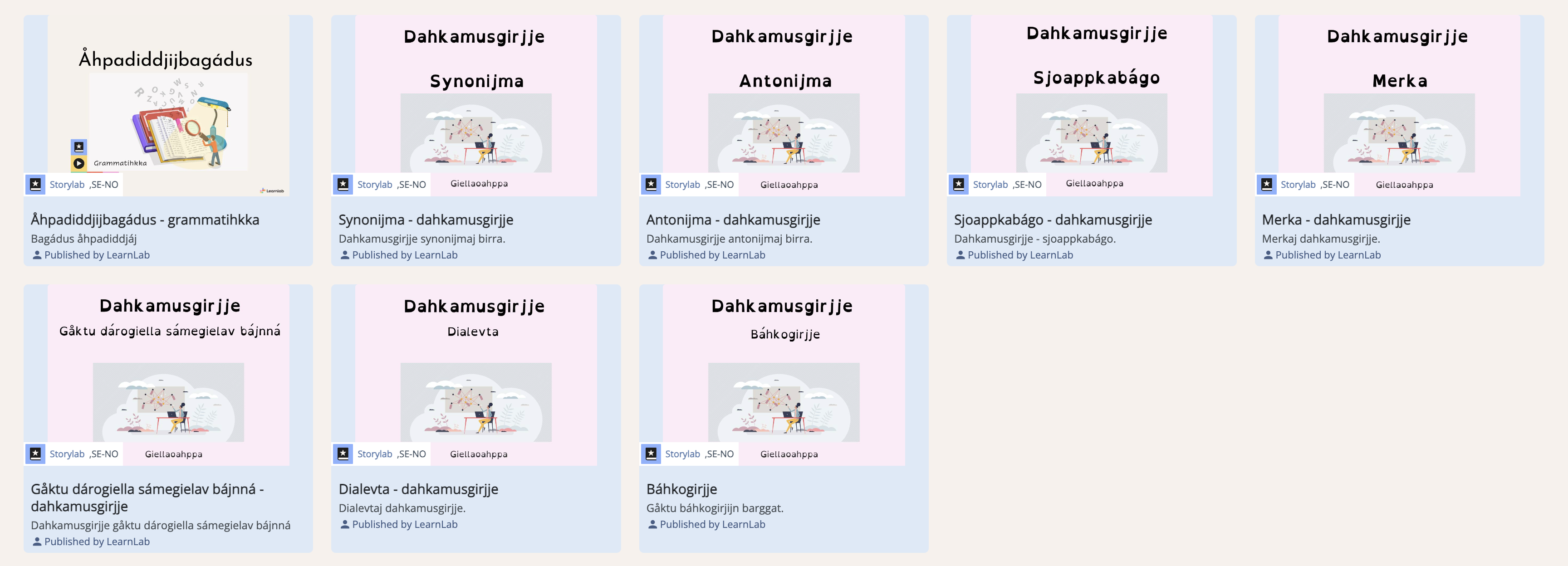 Grammatihkka- giellaoahppa l giellaåhpa birra, ja dán rájdon barggi oahppe synonyjmaj, antonyjmaj, sjoappkabágoj, merkaj, giellasuorgij ja gåktu báhkogirjev adnet.