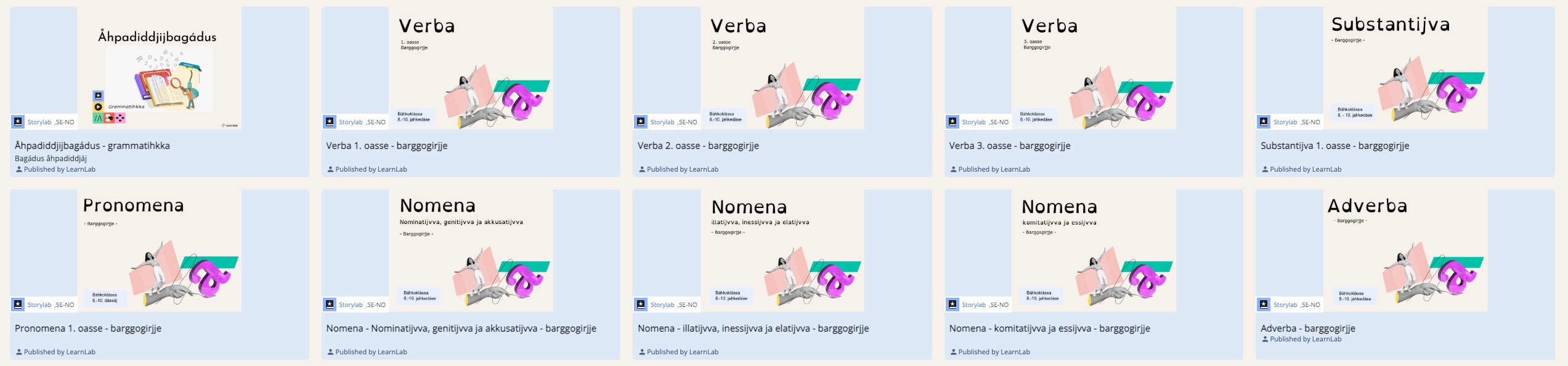 Grammatihkka l juogeduvvam gålmå rájdduj, nav gåk 5.-7. jahkedáse resursa. Girje álggi oahpásmahttemijn iesjgeŋga suorgijda, ja dan maŋŋela li hárjjidallamdahkamusá. Muhtem suorgijn li 1. oasse, 2. oasse ja 3. oasse, luondulasj åvddånime milta.